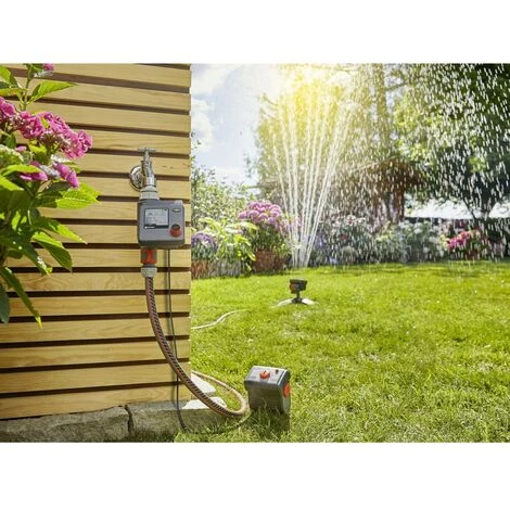 La commande d’arrosage Gardena Select permet de planifier l’arrosage de façon flexible et personnalisée. Trois programmes indépendants peuvent être configurés pour l’arrosage de votre jardin. La commande fonctionne sur piles, s’installe directement sur le robinet et s’utilise facilement via un bouton-poussoir rotatif pour la sélection des données et via une touche de validation. Un écran LCD facilement lisible affiche tous les paramètres d’un seul coup d’œil. L’unité de commande résistante aux intempéries est amovible. La commande d’arrosage Select peut être utilisée en combinaison avec un capteur d’humidité du sol Gardena.