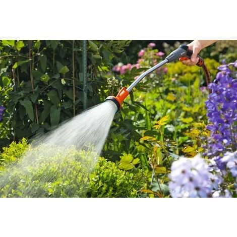 Le fusil arrosoir Classic GARDENA est idéal pour l’arrosage à longue portée. Il est doté d’une protection contre le gel, le principal responsable des fuites. La gâchette ergonomique avec verrouillage intégré permet d’arroser en continu sans avoir besoin d’appuyer en permanence sur la gâchette. La pomme d’arrosage est munie d’une bague de protection en caoutchouc. Formes du jet : jet de pluie. Longueur : 60 cm avec crochet de suspension.
