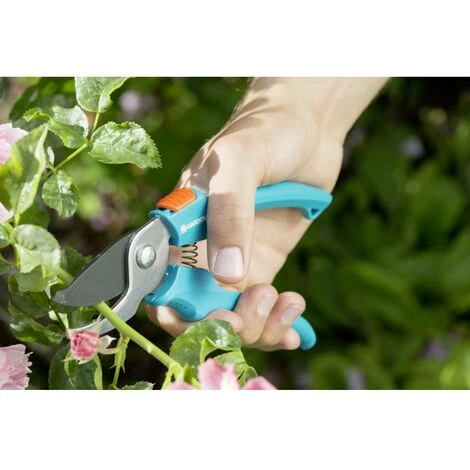 Le sécateur Classic GARDENA est le sécateur traditionnel, possédant toutes les caractéristiques qui désignent un bon sécateur. Sa coupe est puissante. Il est moderne et ergonomique et convient iparfaitement à la coupe de fleurs et de jeunes pousses. Sa tête de coupe inclinée est munie de lames à revêtement anti-adhésif et affûtées avec précision. Grâce aux poignées ergonomiques, le sécateur offre une prise en main optimale. Les deux positions laissent le choix entre une coupe puissante ou rapide. Son verrou de sécurité enclenchable d’une seule main permet un verrouillage facile et un entreposage sûr. Le sécateur Classic peut couper un diamètre de branche allant jusqu’à 18 mm.