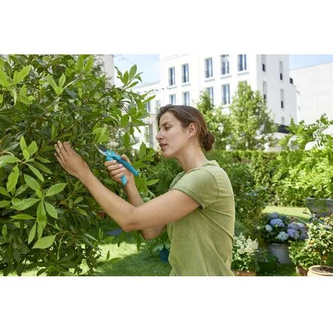 Le sécateur de jardin GARDENA B/S-M est particulièrement adapté à la coupe précise et propre des fleurs, des jeunes pousses et du bois frais grâce à une lame supérieure enduite anti-adhésive et une lame inférieure en acier inoxydable. Les poignées ergonomiques peuvent être graduellement ajustées à deux largeurs de poignée ou diamètres de coupe. Le composant souple supplémentaire sur le guidon supérieur assure la résistance au glissement nécessaire. La poignée plus petite est particulièrement pratique pour les jardiniers avec de petites mains ou pour couper des branches plus petites. Le sécateur possède un racle sève et un coupe-fil. Grâce au verrouillage de sécurité d’une seule main, les lames se ferment facilement et se rangent en toute sécurité. Ce sécateur GARDENA coupe des branches d’un diamètre maximum de 22 mm.