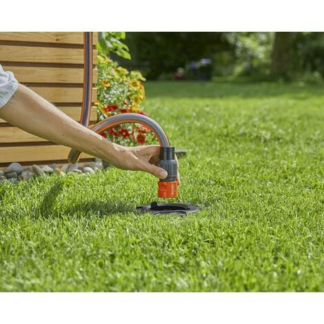 Le départ enterré GARDENA est un élément important du système Pipeline GARDENA et du Sprinklersystem GARDENA, car il relie le robinet aux conduites souterraines et constitue le point de départ des systèmes.