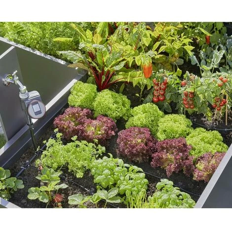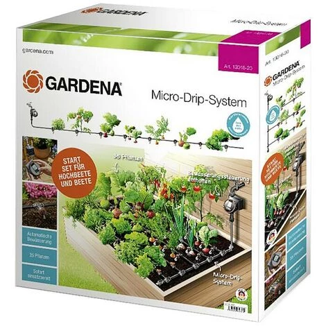 - Prêt à l’emploi : le kit contient tous les composants nécessaires pour une irrigation goutte-à-goutte économe de 35 plantes dans des béettesMontage et transformation simples grâce à la technologie de connexion « Quick & Easy » brevetéeDébit d’eau constant et efficace même en pente ou en altitudeCommande automatique via la commande Flex d’arrosage avec durée d’arrosage réglable en quelques secondes.