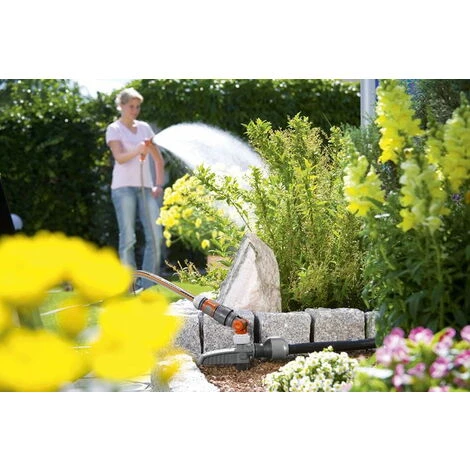 La prise d’eau avec nez de robinet articulé GARDENA permet un captage pratique de l’eau même sans robinet classique.