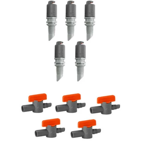 Un pack GARDENA – Micro-asperseurs Micro-Drip 180° 5 pcs – RĂ©gulateur – 5 pcs