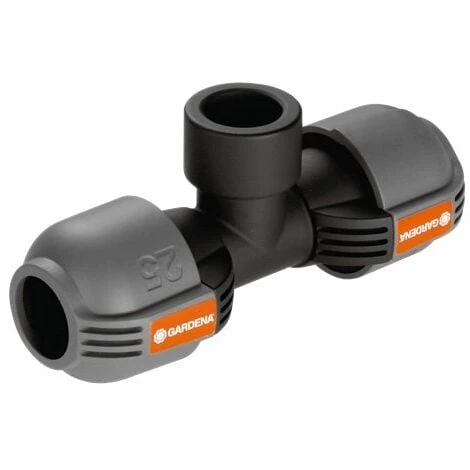 Pièce en T de 25 mm pour raccord fileté femelle GARDENA modèle 2790-20 3/4 « pour installer l’irrigateur directement le long de la ligne 25 mm x 3/4 » Fil femelle Utile pour installer la vanne de vidange (article 2760-20) directement dans la ligne d’irrigation Pour un fonctionnement étanche, le raccord fileté de la pièce en L est auto-étanche Technologie de connexion « Quick & Easy », pour connecter ou déconnecter le tuyau en faisant simplement pivoter le raccord de 140 ° Modèle: 2790-20 Technologie de connexion « Quick & Easy » Joint parfait grâce au filetage conique