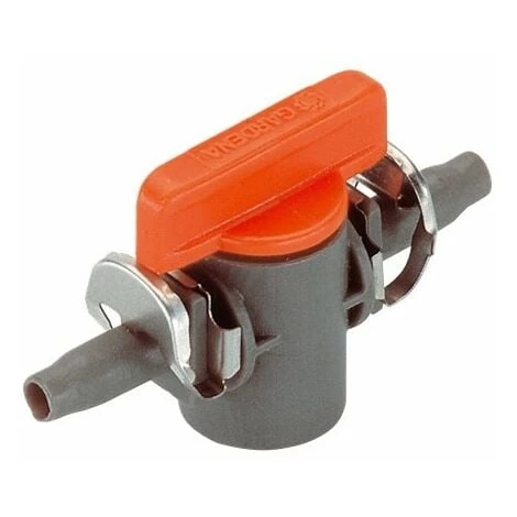 Vanne d’arrĂŞt 4,6 mm (3/16 « ) modèle GARDENA 8357-29 pour la fermeture facile et la rĂ©gulation des lignes individuelles Pour fermer les lignes individuelles de 4,6 mm (3/16 « ) Avec système d’accrochage pratique « Quick & Easy » pour une installation facile Modèle: 8357-29 Système d’accrochage « Quick & Easy » Installation facile